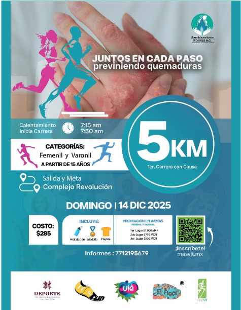 El H. Ayuntamiento de San Martín de las Pirámides, en coordinación con sus direcciones municipales, invita a toda la comunidad a participar en la 1ª Carrera con Causa de 5 KM, cuyo objetivo es promover la prevención de quemaduras y fomentar la actividad física.